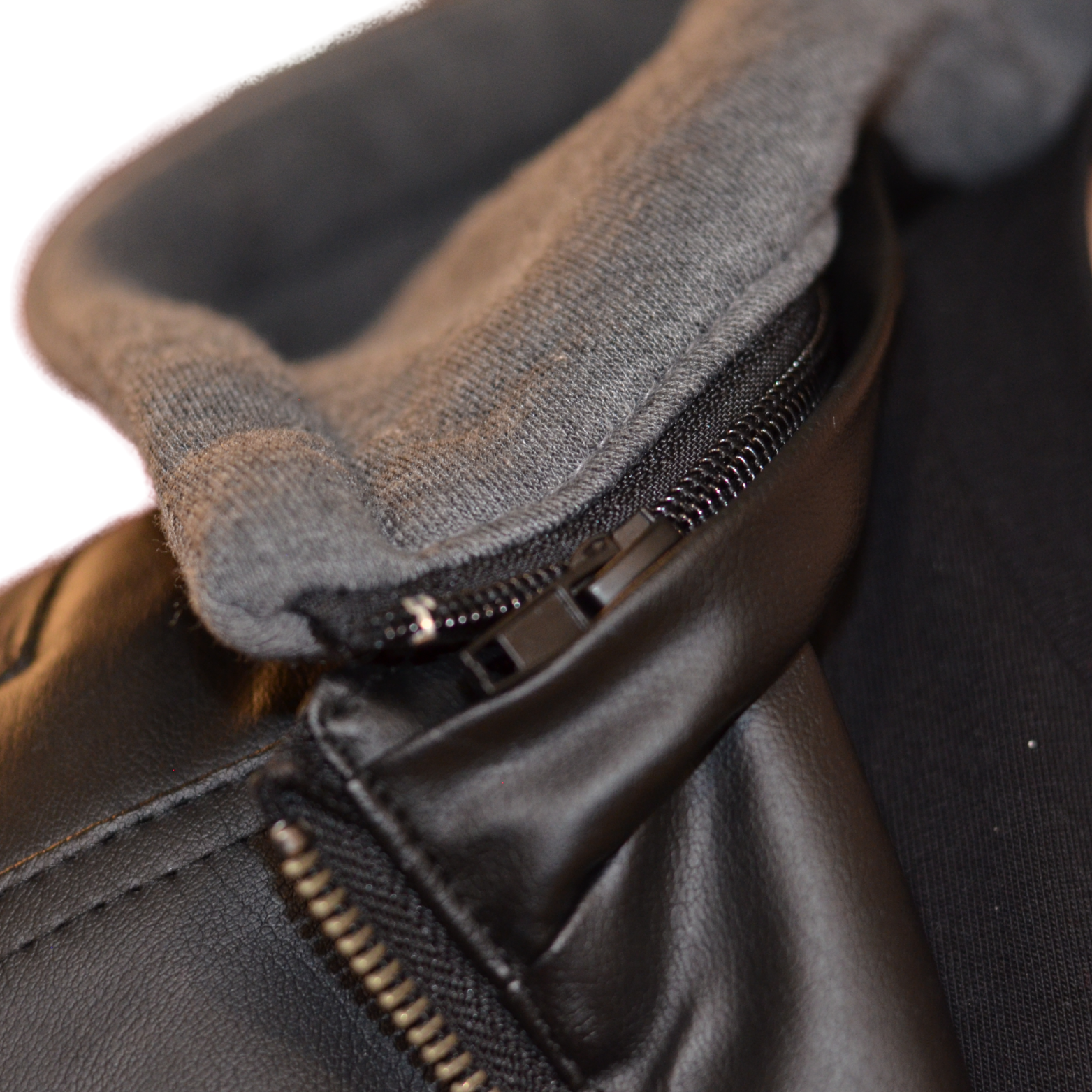 Durable front zipper closure with a high collar to keep you warm and stylish in colder weather