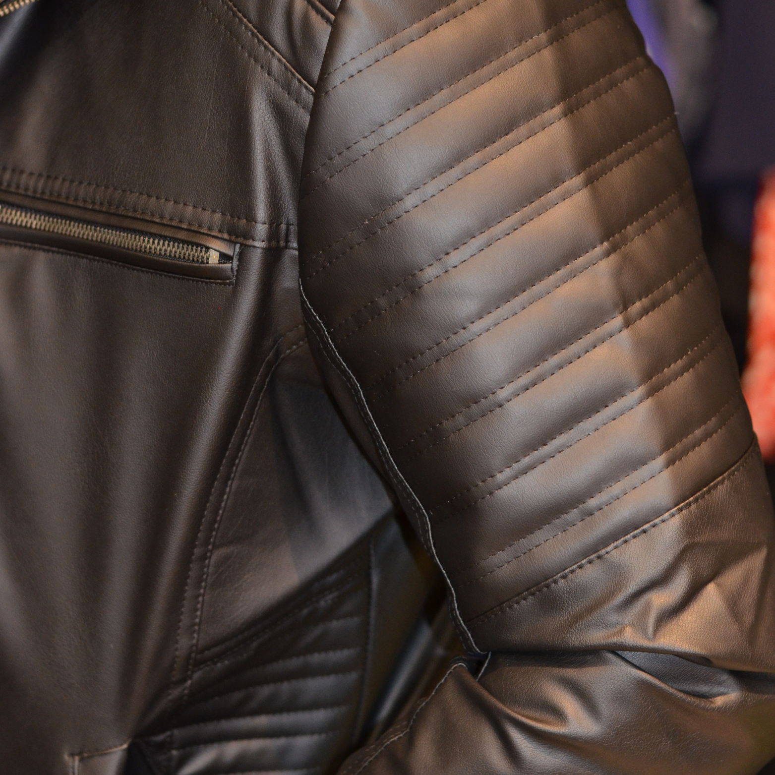 Quilted detailing on the sleeves for subtle texture and a modern, moto-inspired touch