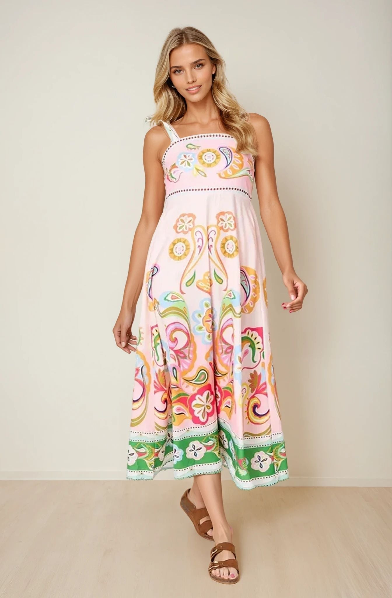 Chase the sun in our Bella Sundress — a breezy, feel-good favourite made for island days and city escapes alike. With its bold wanderlust print and effortlessly flowy shape, this dress is all about fun, freedom, and feminine flair. Just add sandals, sunnies, and you're ready to roam.
