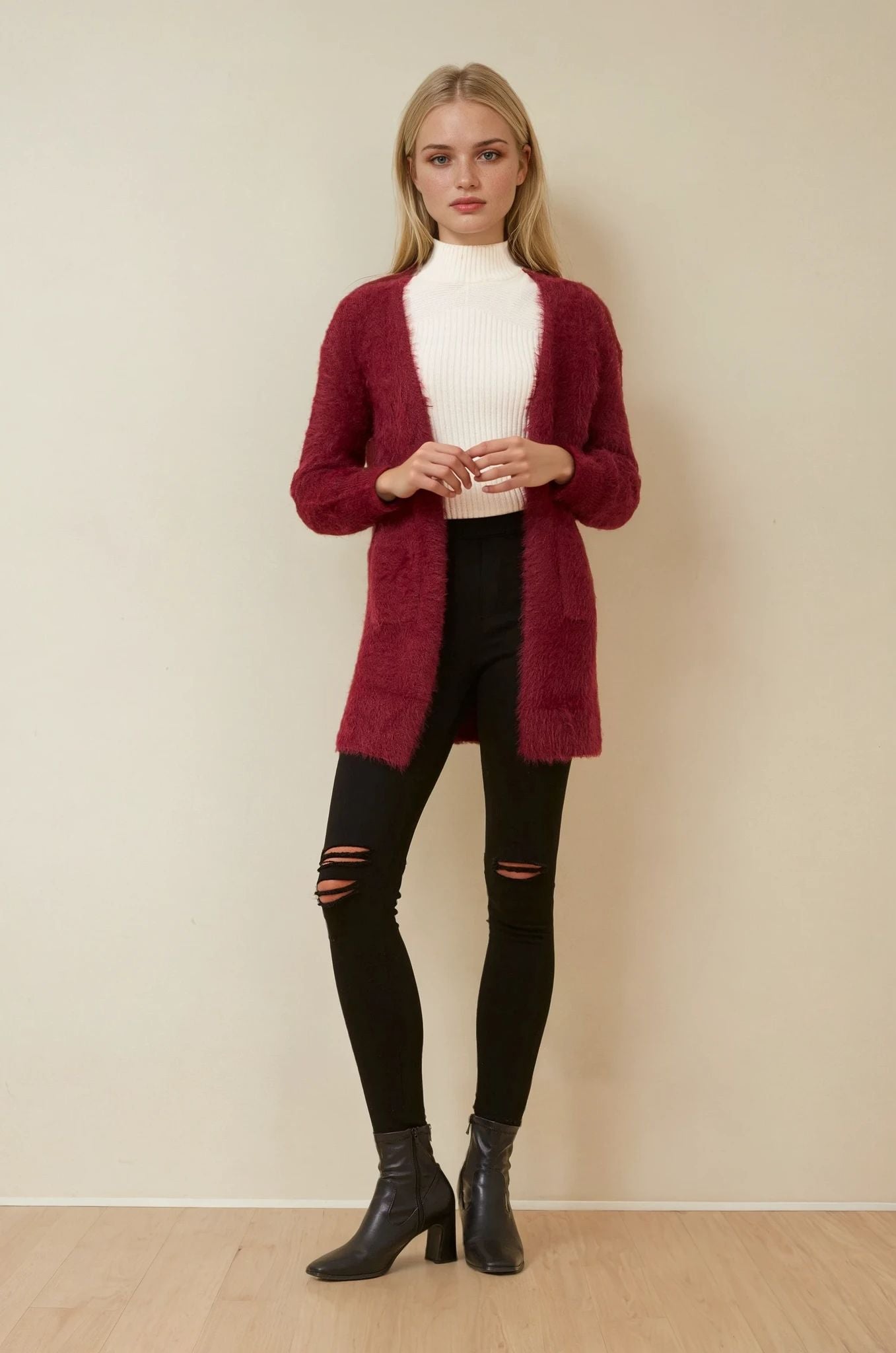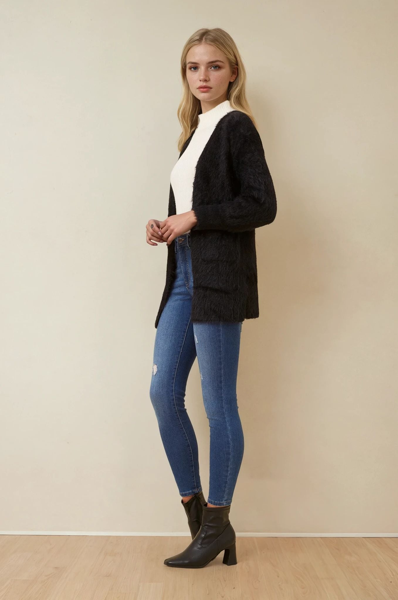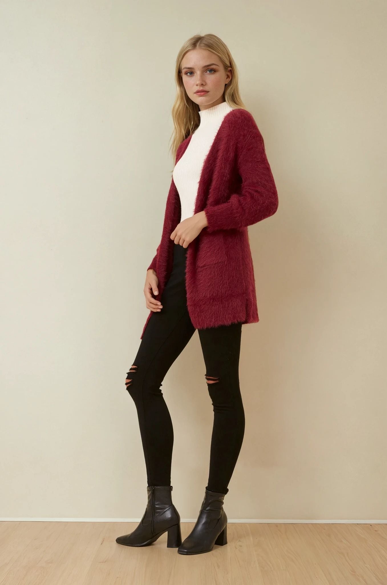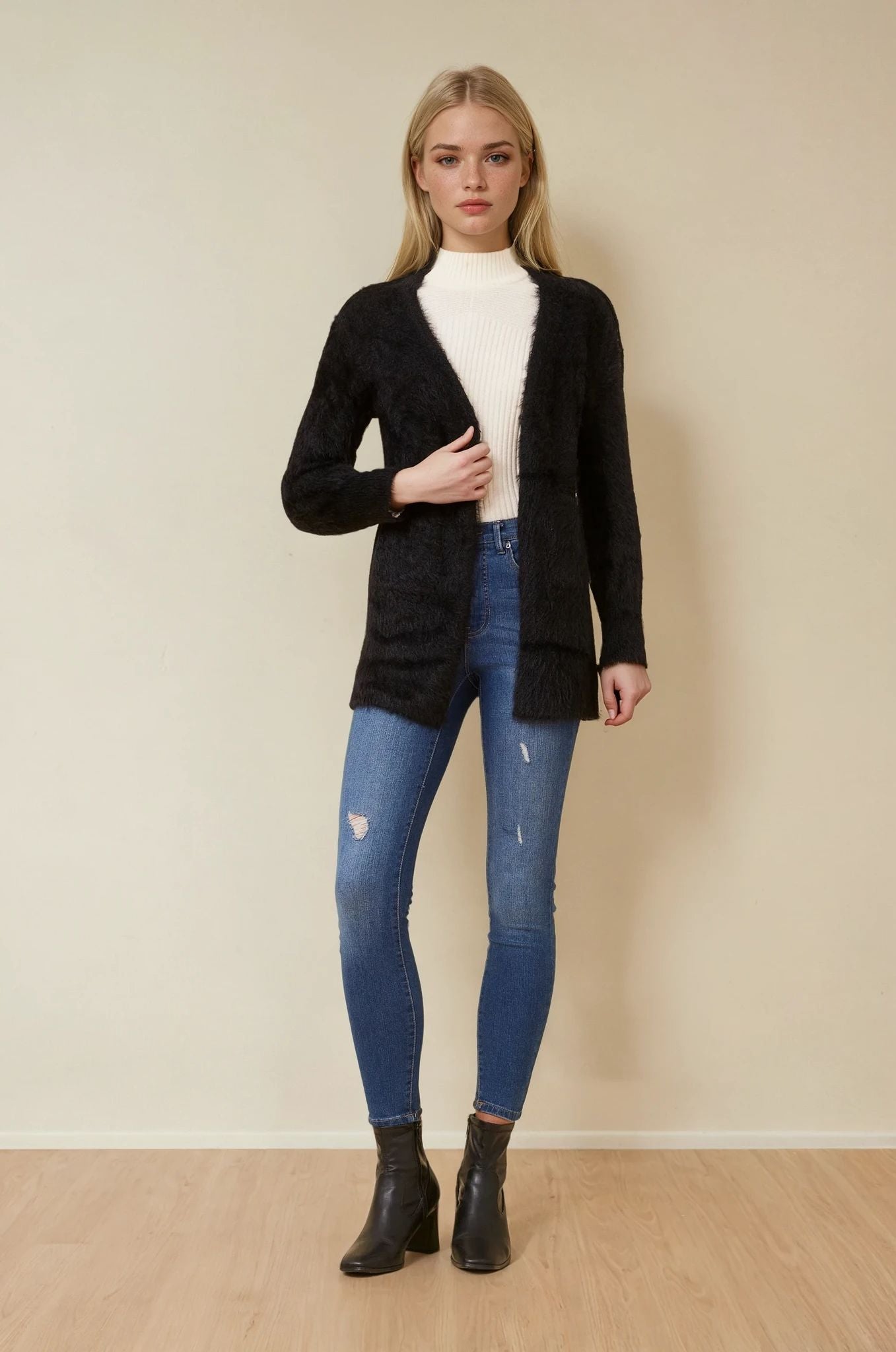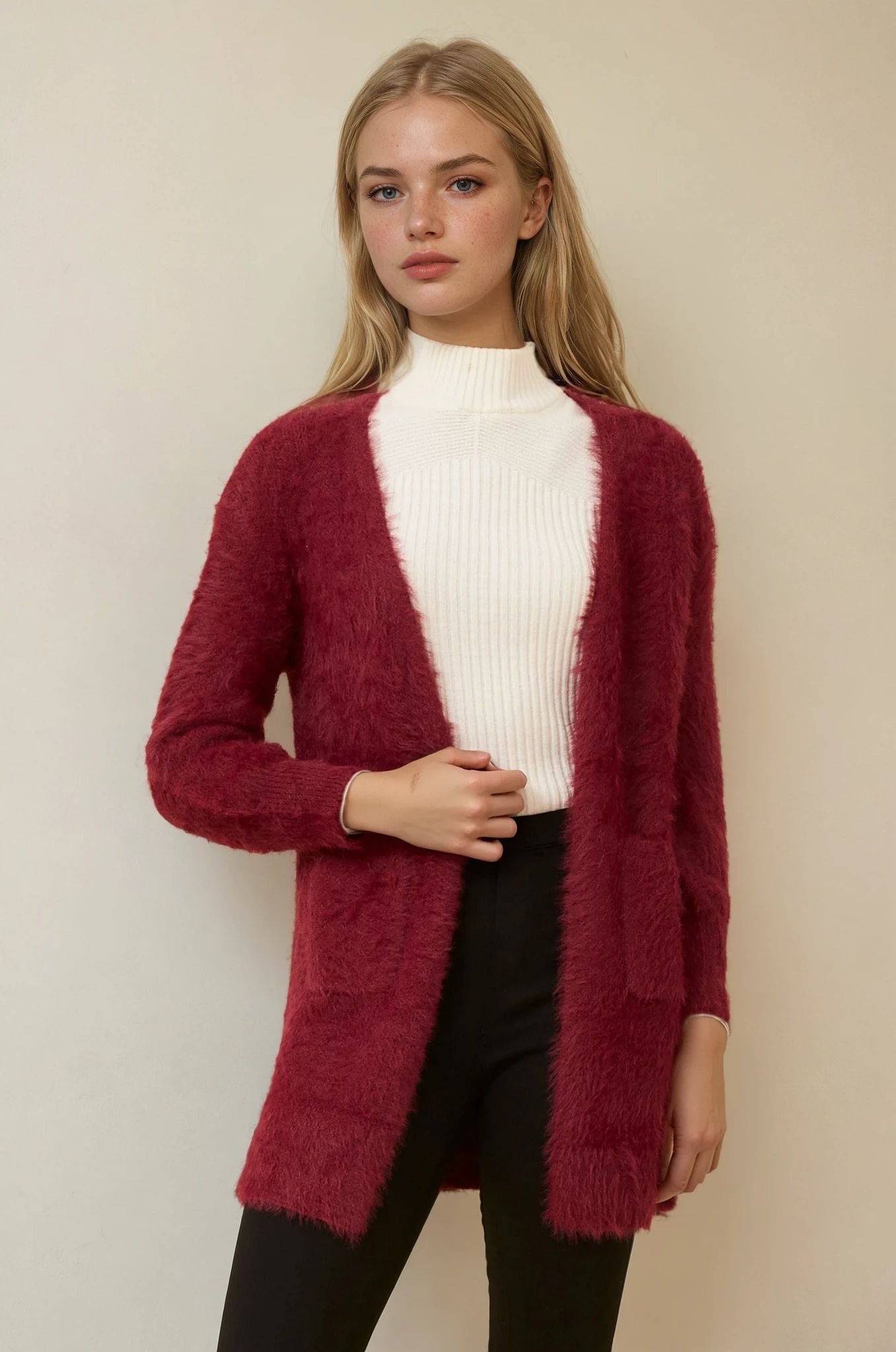 Wrap yourself in a cloud of softness with the Leeza cardigan — your ultimate go-to for cozy-chic layering. Crafted from luxe eyelash yarn, this piece brings dreamy texture and effortless elegance to any outfit. Throw it over denim and a tee for laid-back glam, or drape it over a dress to glide from brunch to bar with ease.