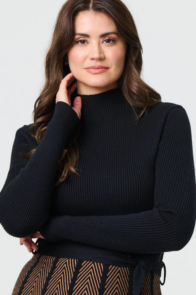 The high neckline adds polish, while the subtle waist tie cinches for a perfectly contoured shape. From desk to dinner, this dress transitions seamlessly with boots or heels.