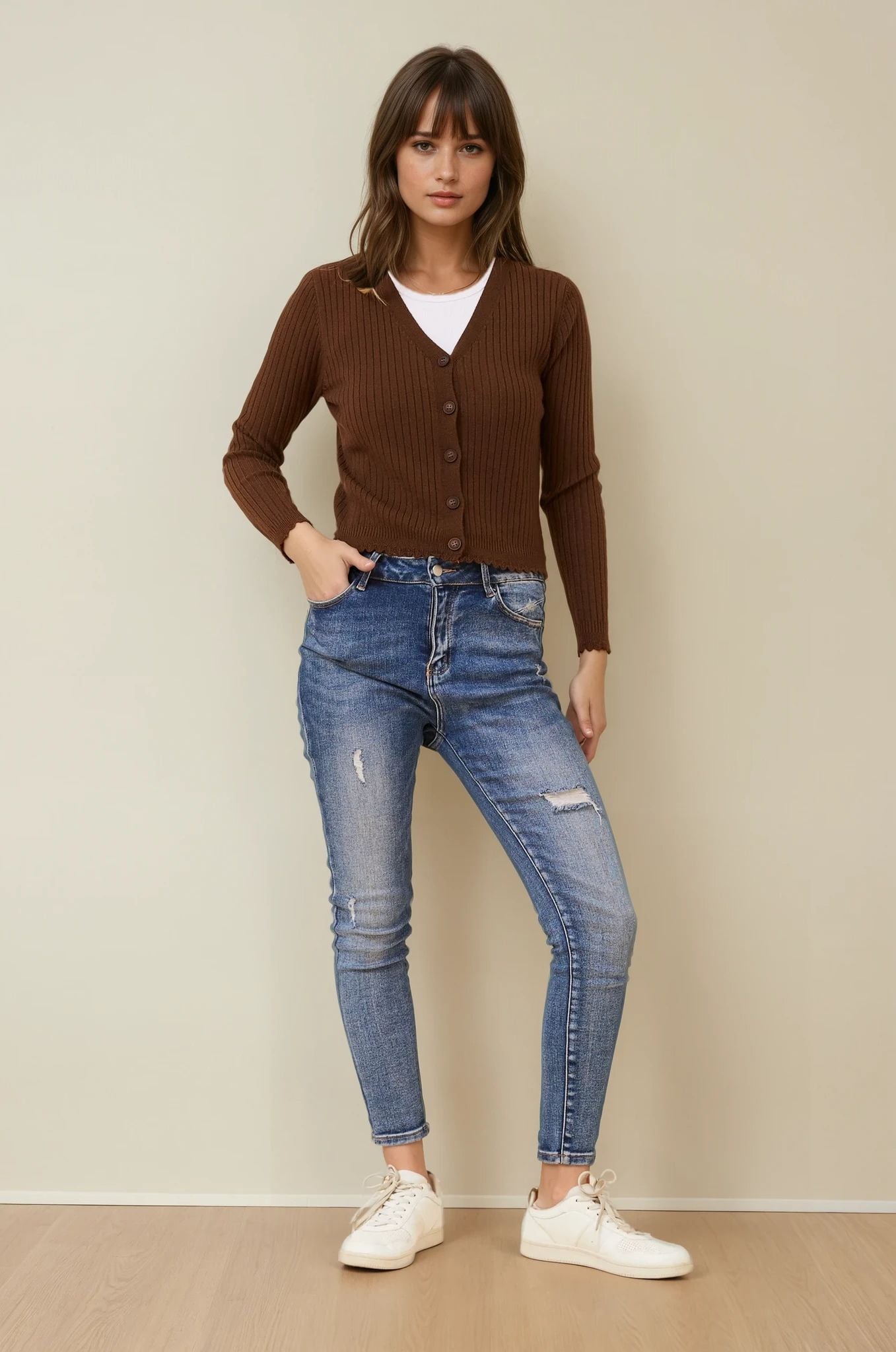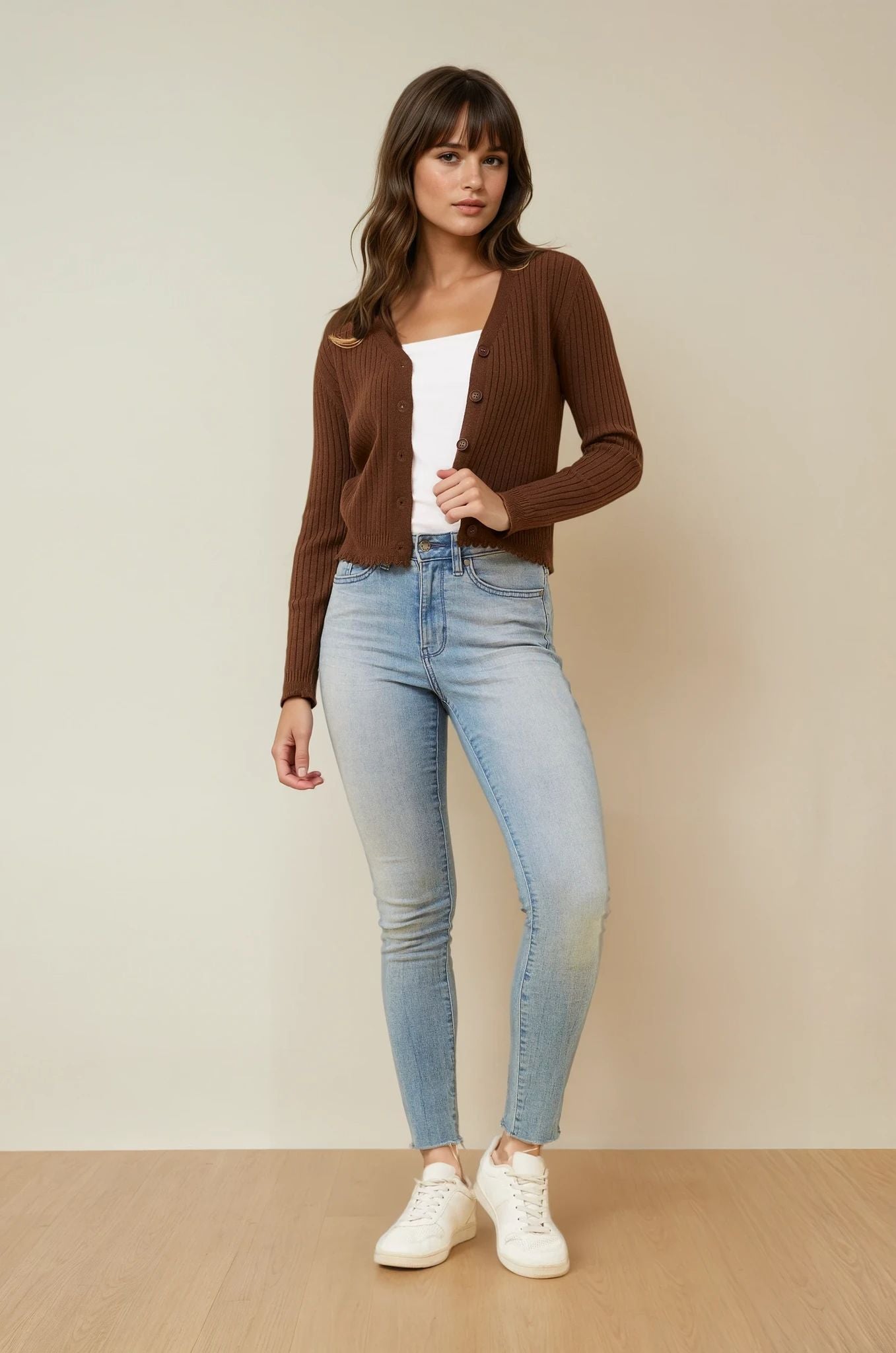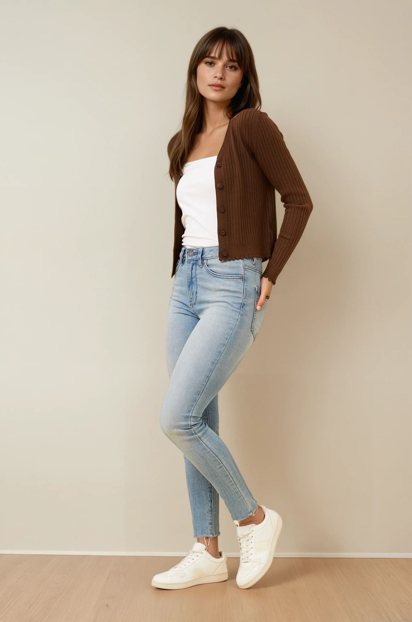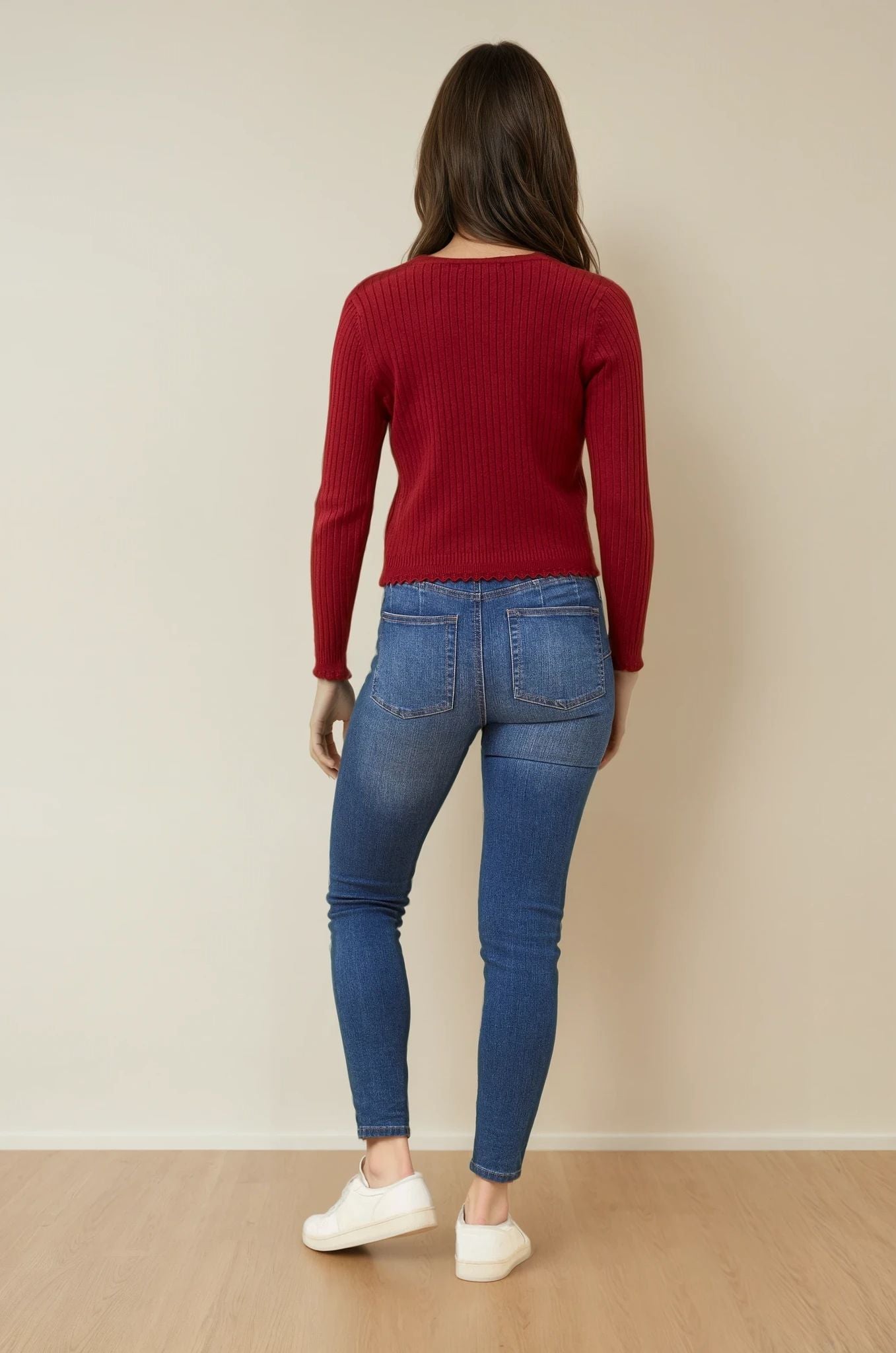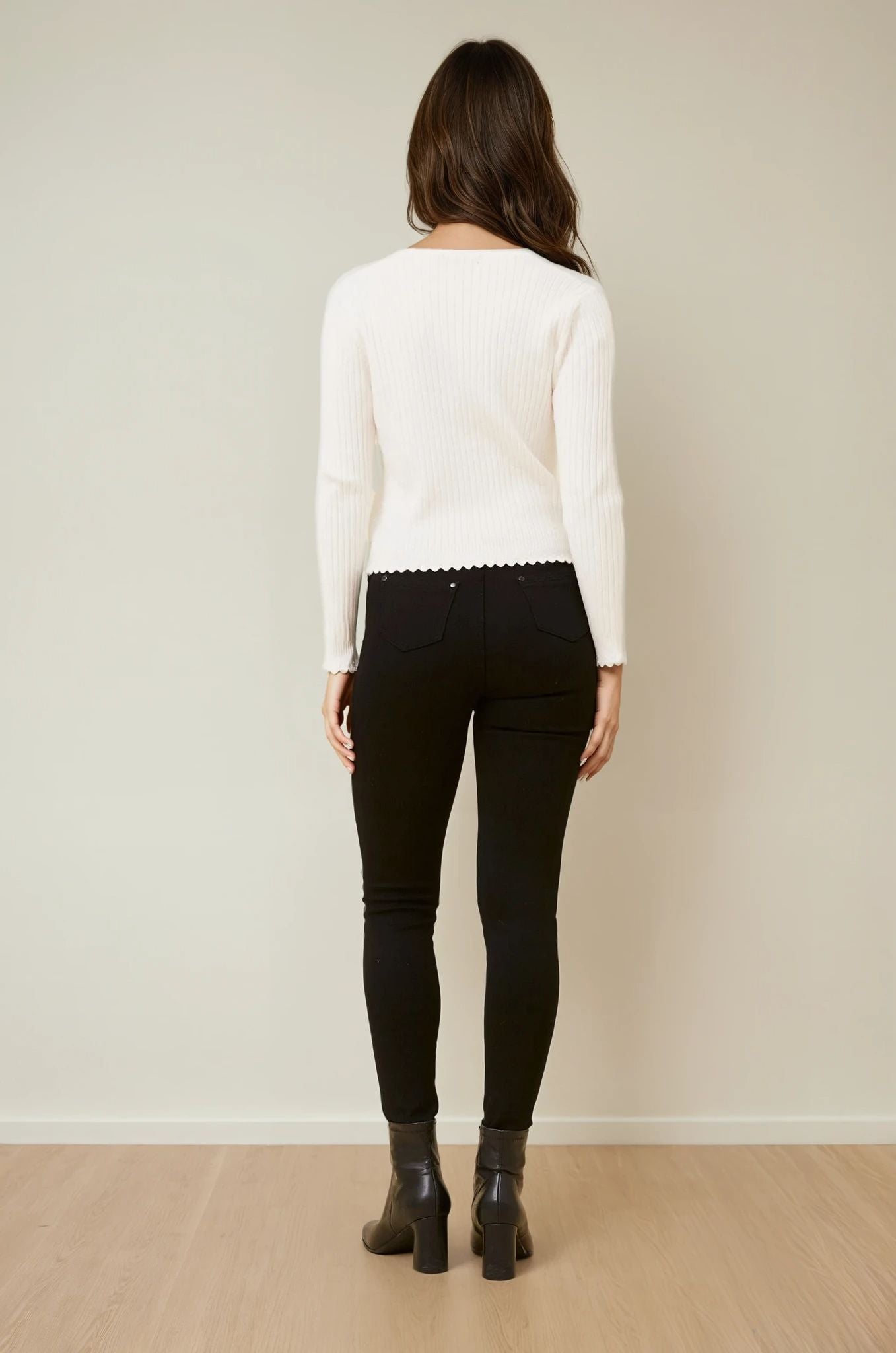 The Luxe Scallop Knit Cardigan is the perfect piece to pair with jeans, skirts, or dresses for a chic, everyday look that never goes out of style.