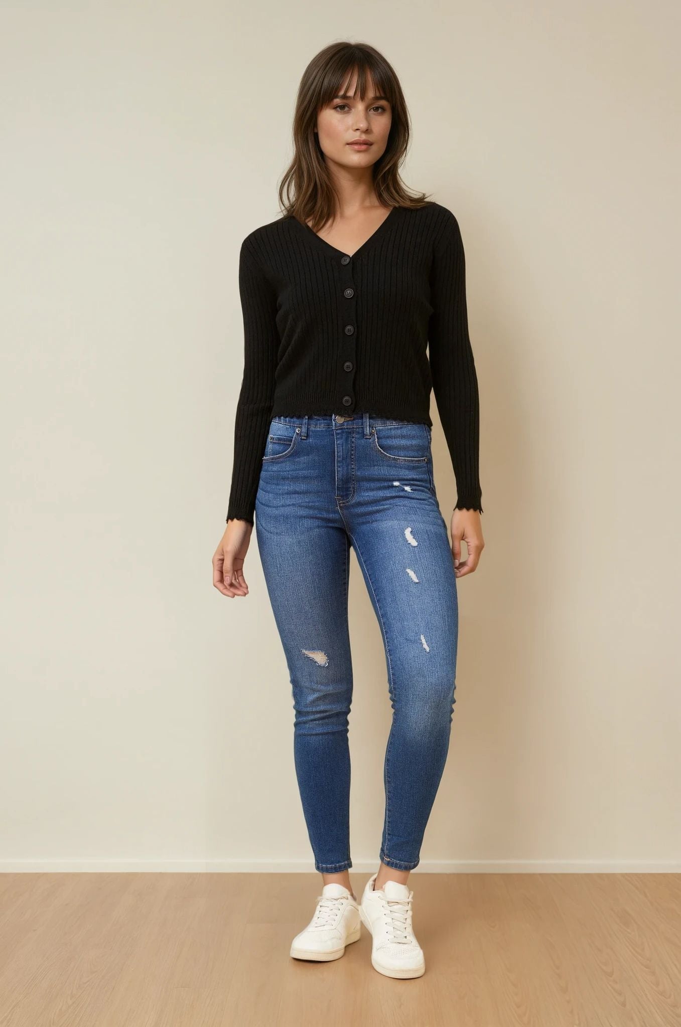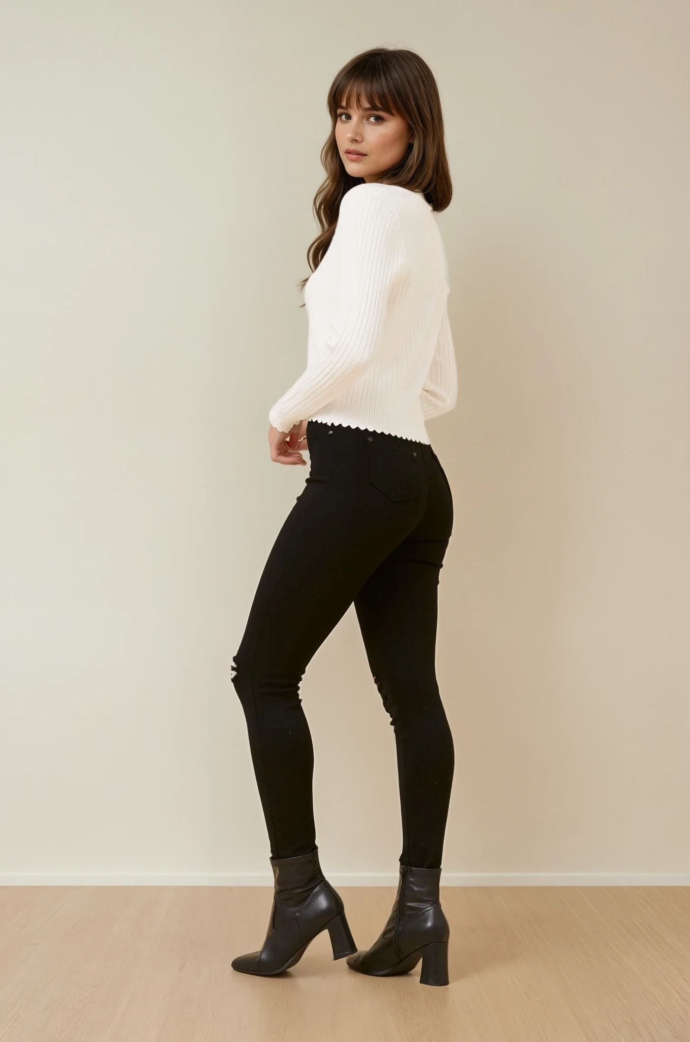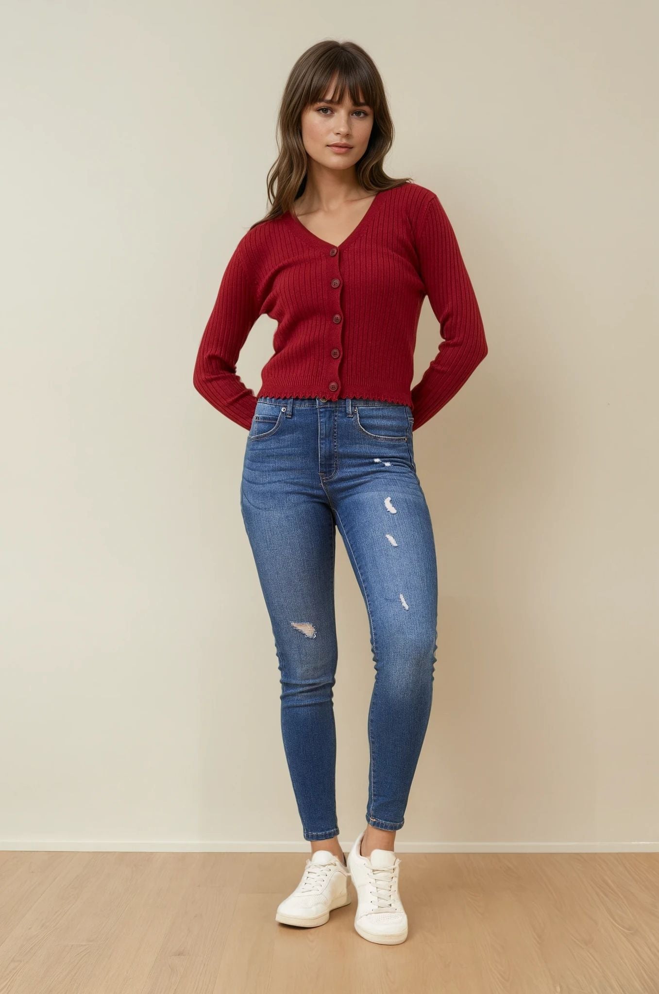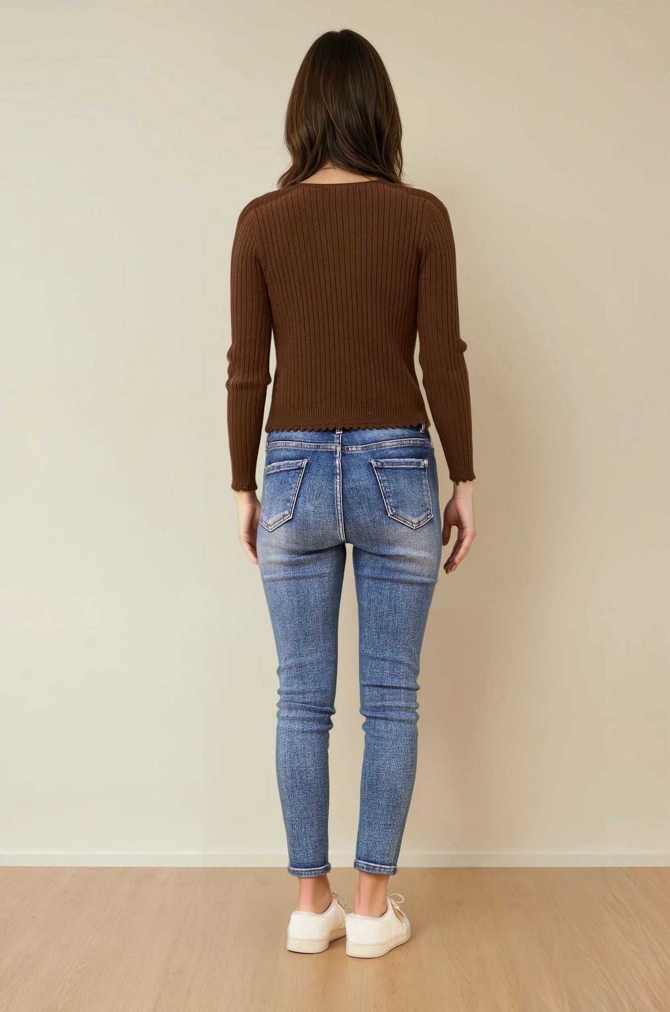 The Luxe Scallop Knit Cardigan is the perfect piece to pair with jeans, skirts, or dresses for a chic, everyday look that never goes out of style.