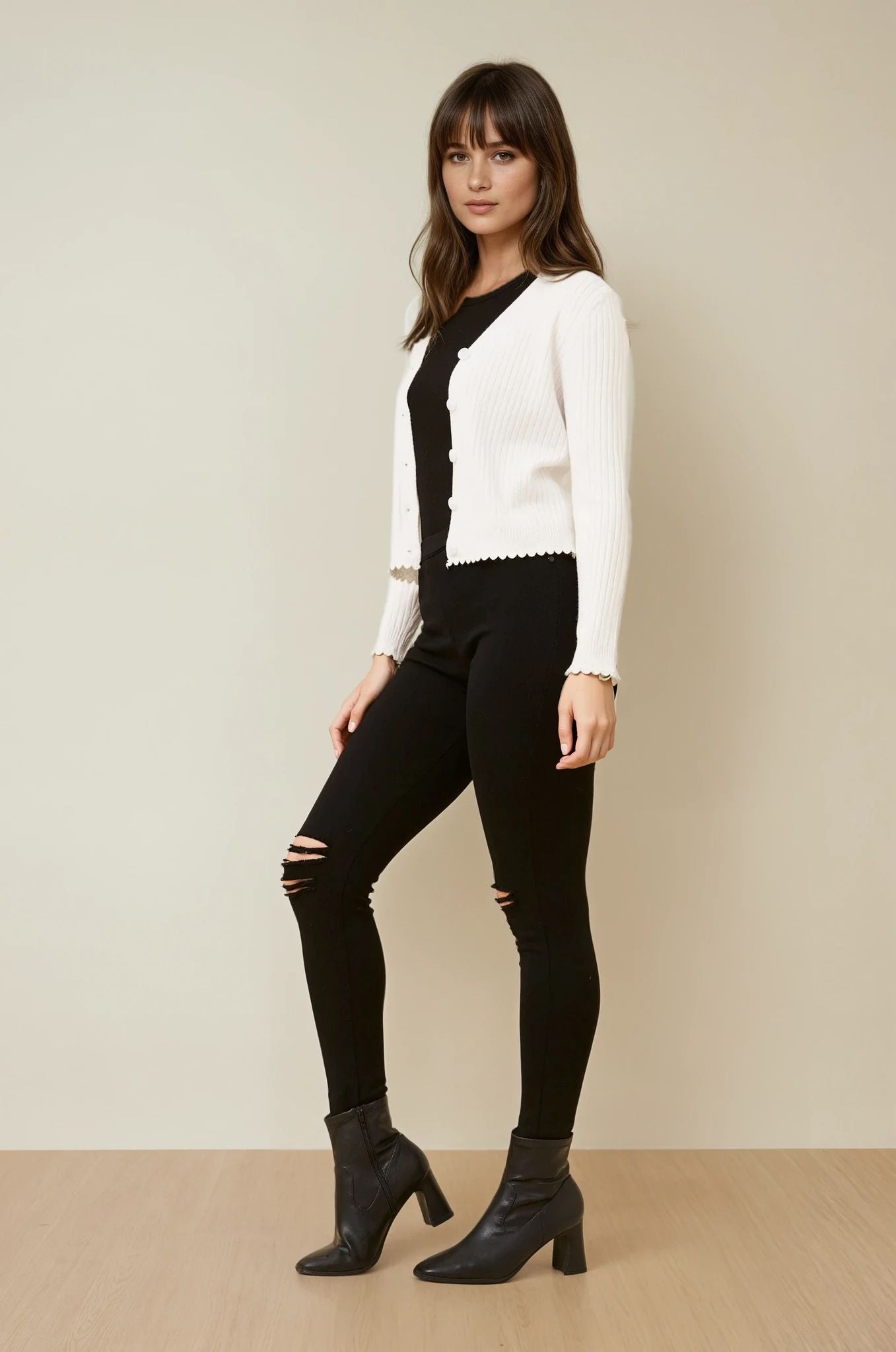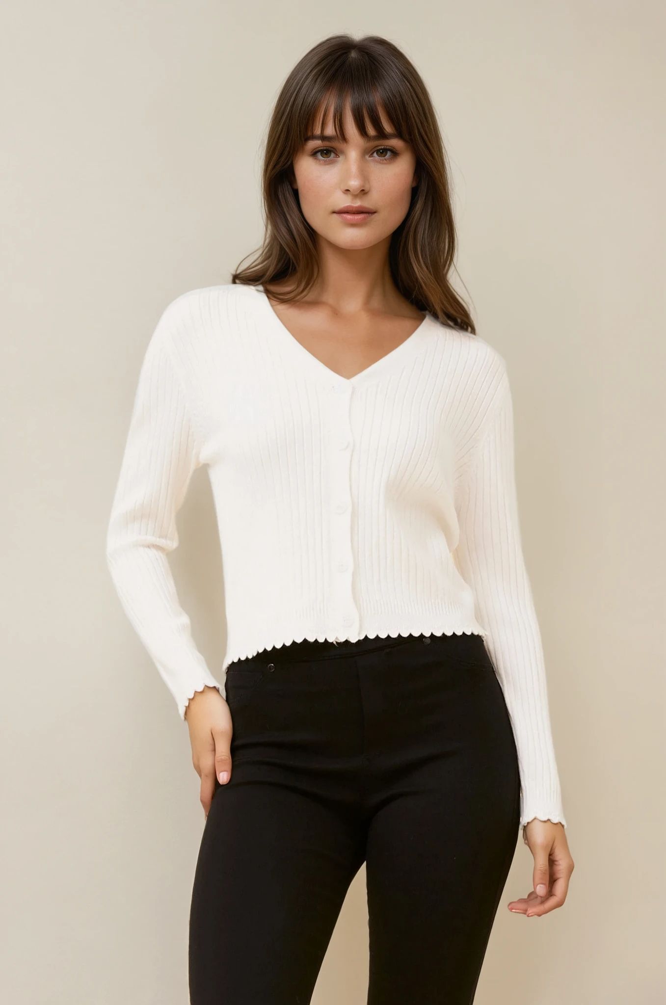 levate Your Wardrobe with the Luxe Scallop Knit Cardigan