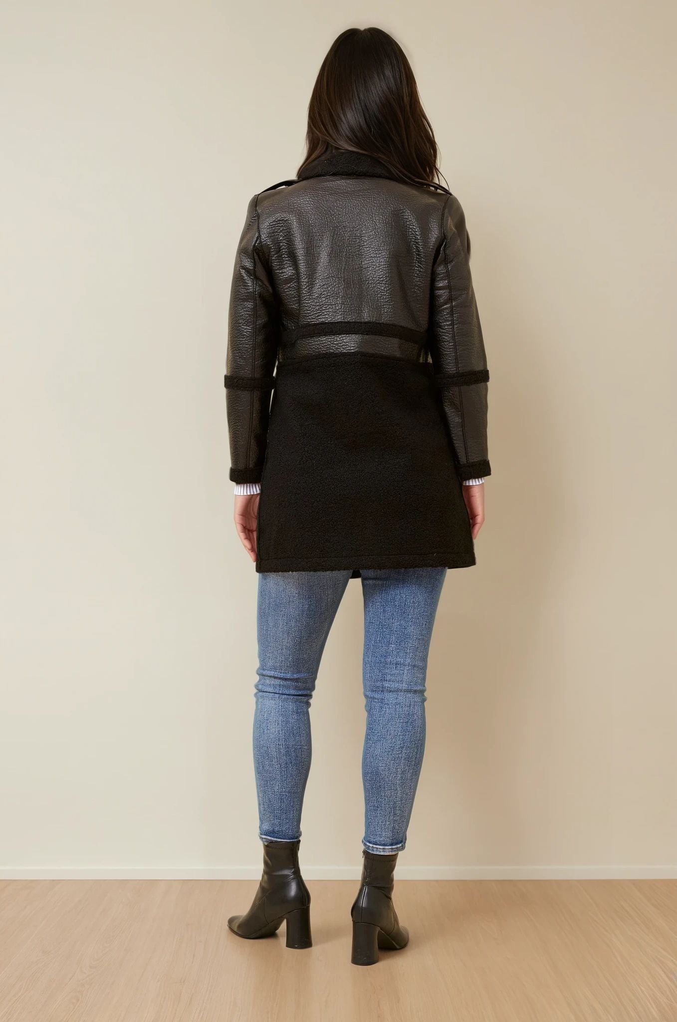 Bold, modern, and built for the chill — the Midnight Luxe Contrast Coat is the ultimate fusion of texture and attitude. Designed to elevate your outerwear game, this piece pairs sleek faux leather panels with plush teddy-style fabric for a look that’s as fierce as it is cozy.