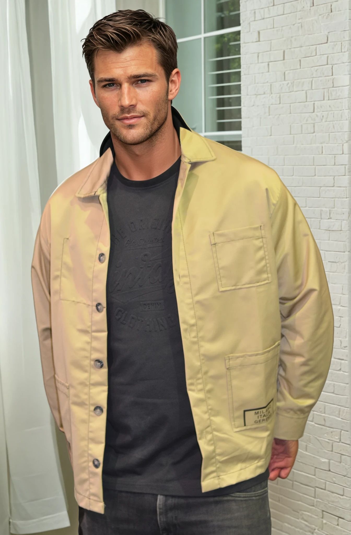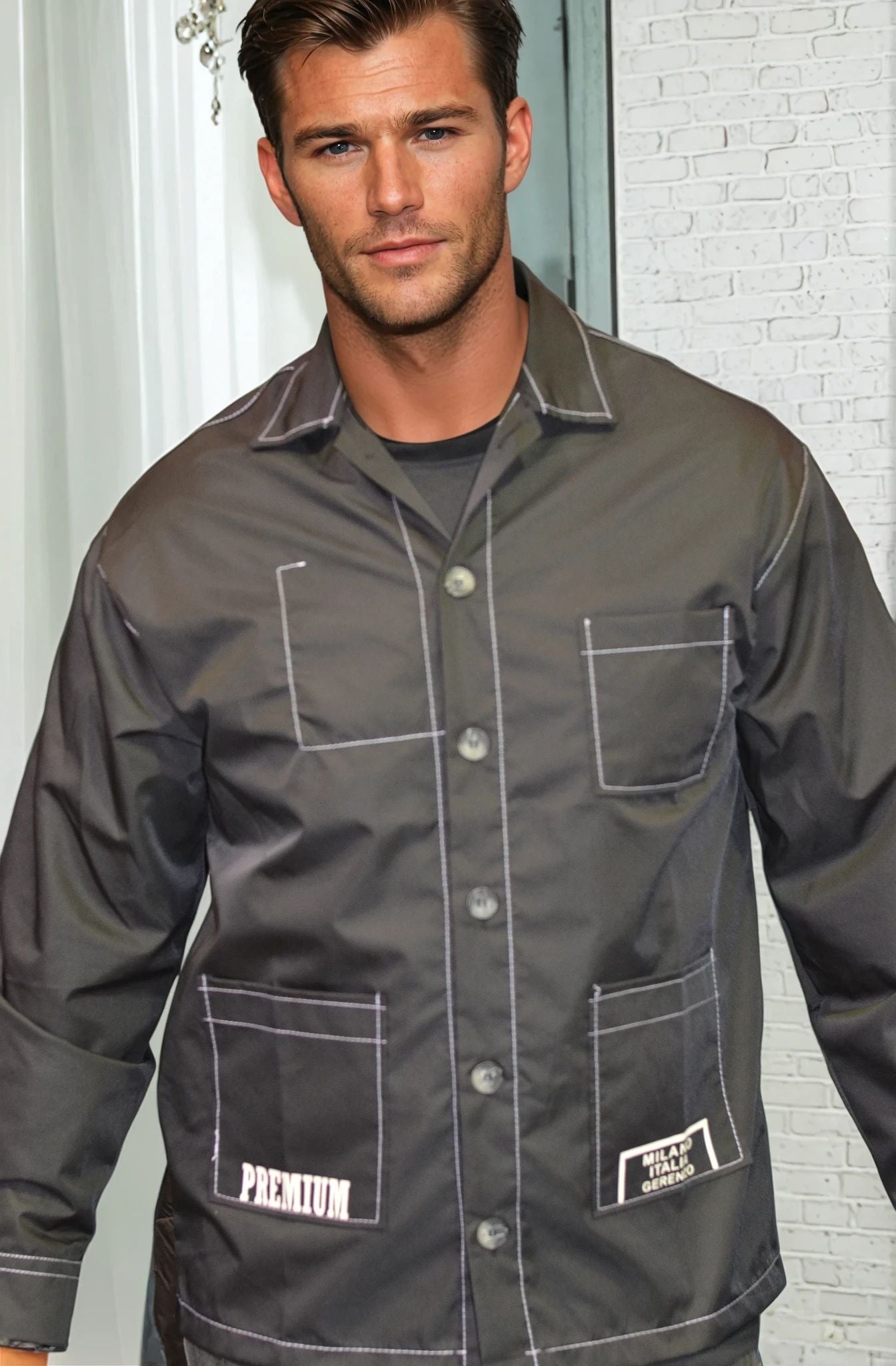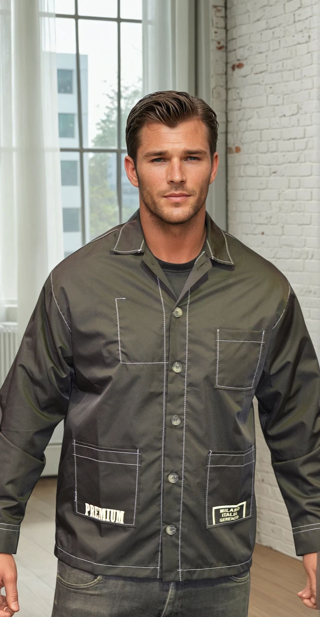 Workwear-inspired. Street-ready. The Milano Patch Utility Shirt blends function with fashion in a clean, contemporary silhouette. Featuring contrast white stitching, oversized front pockets, and standout embroidered patches reading “PREMIUM” and “MILANO ITALIA,” this jacket brings that Euro-industrial edge to your everyday fit.