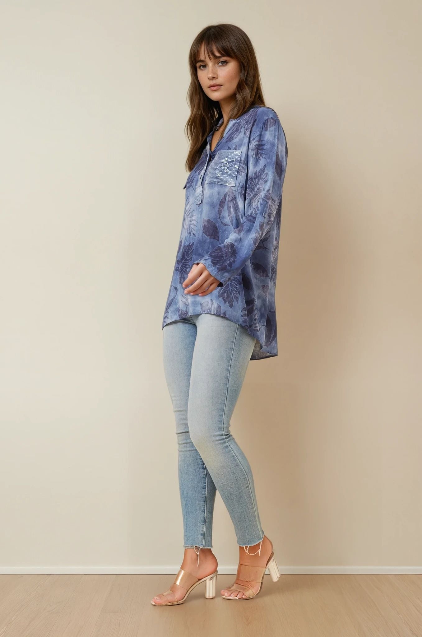 A dazzling sequin chest pocket to add a pop of glam