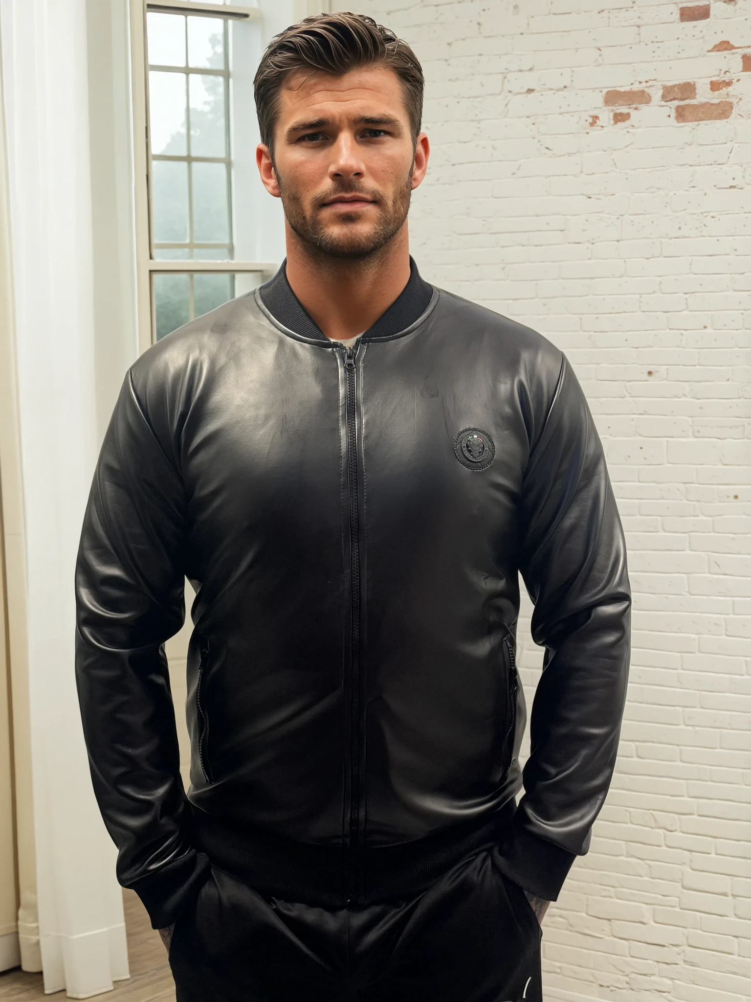 From the crisp collar to the clean zip-through front, every detail is designed to exude confidence. Ribbed cuffs and hem provide that bomber-style silhouette, while the embossed chest emblem subtly nods to its elite status without saying a word. Whether you're pairing it with tailored joggers for a midnight run through the city or elevating a casual tee look, this is your go-to piece for making bold, intentional statements.
