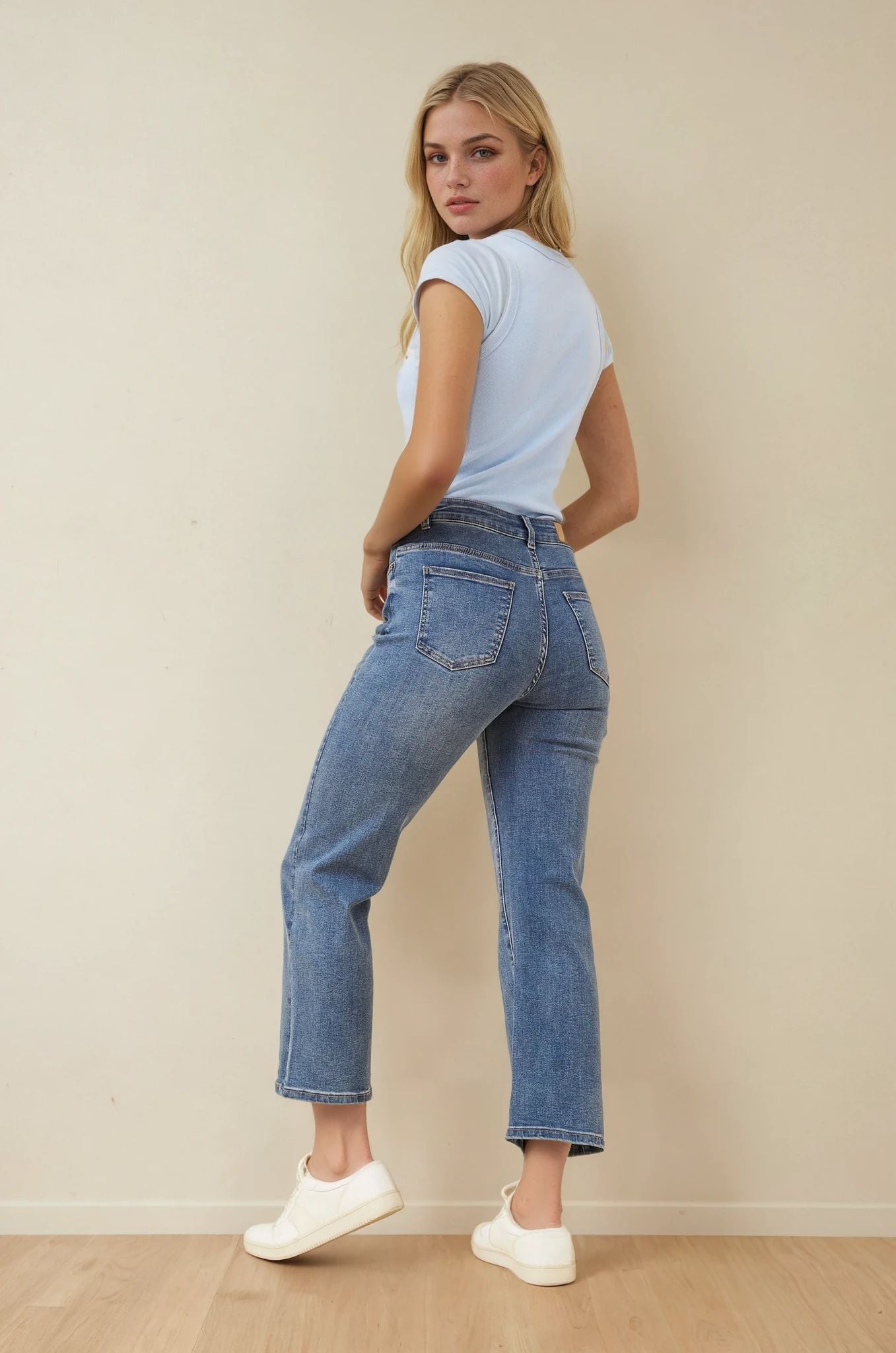 Meet your new everyday denim essential — the Ridge Straight-Leg Jeans. Designed with a flattering high-rise fit and classic straight-leg silhouette, these jeans are made to move with you while keeping your style effortless and timeless. The medium blue wash and subtle vintage fade give them a laid-back edge that works season after season.