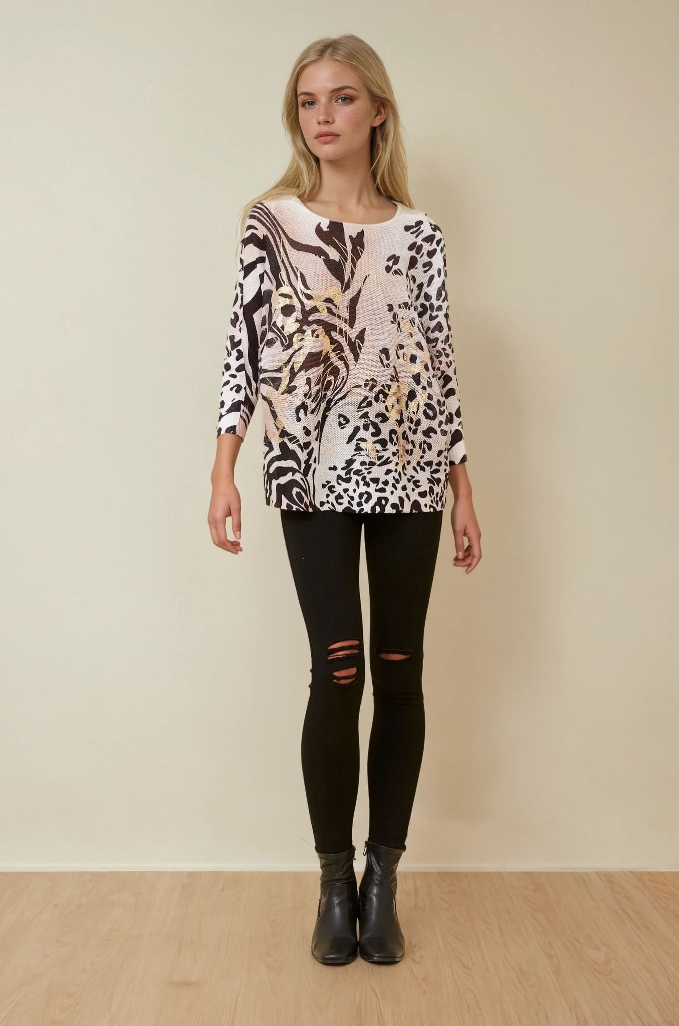 Turn heads and break rules in the Savage Pulse Knit — where cozy meets chaos. This wild knit is your go-to for off-duty edge, dripping in bold animal print that demands attention. Soft to the touch but fierce in style, it’s the ultimate flex for chill days or wild nights.