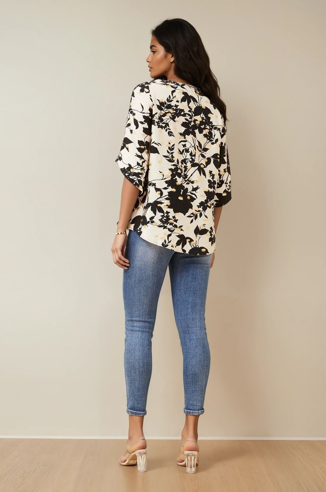 Discover effortless elegance with the Scarlett Foil Print Top – a versatile statement piece that seamlessly transitions from day to night. Crafted from a luxurious silk-feel fabric, this top embodies sophistication with its delicate botanical print, accentuated by a touch of gold foil for a hint of glam.