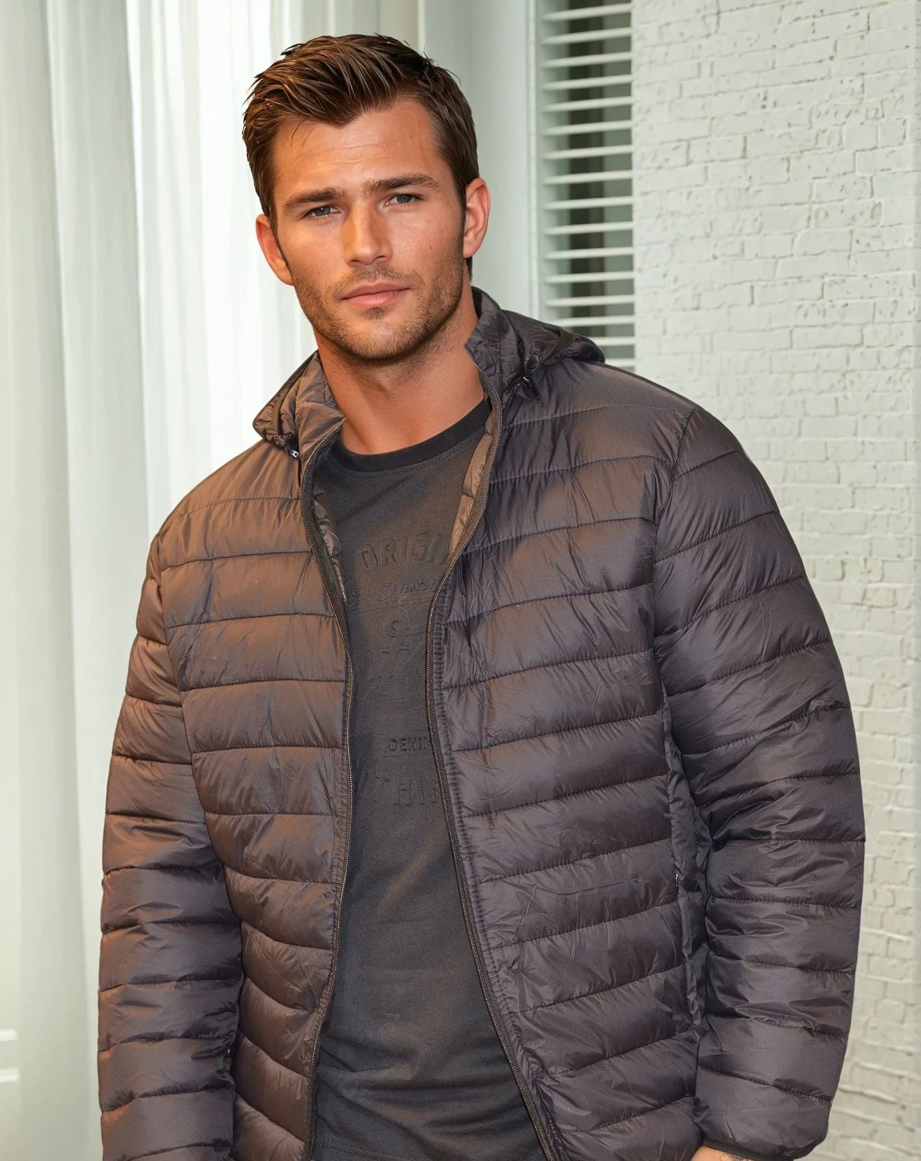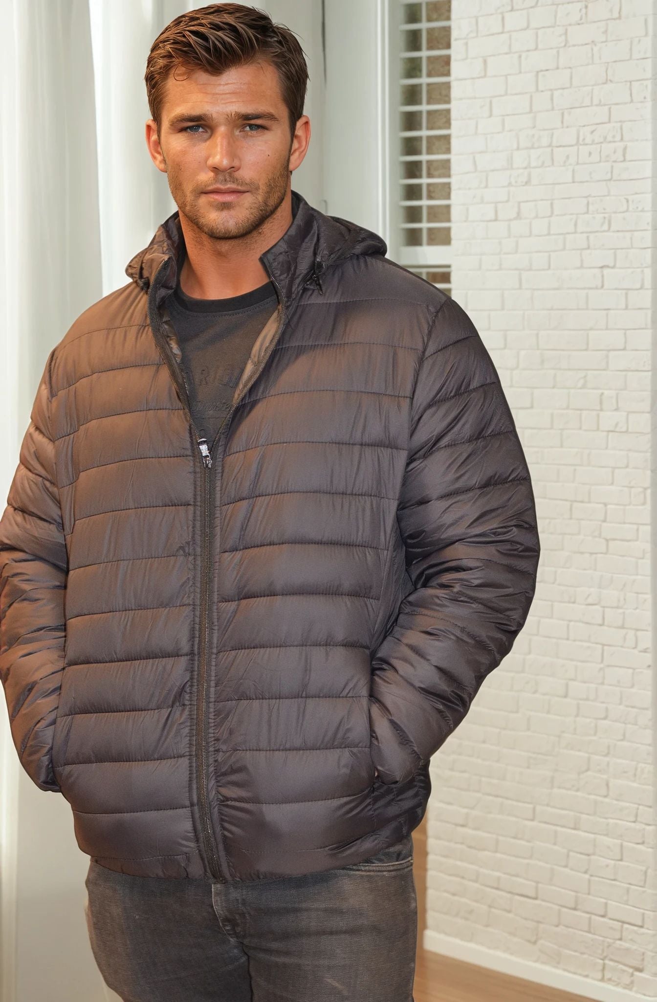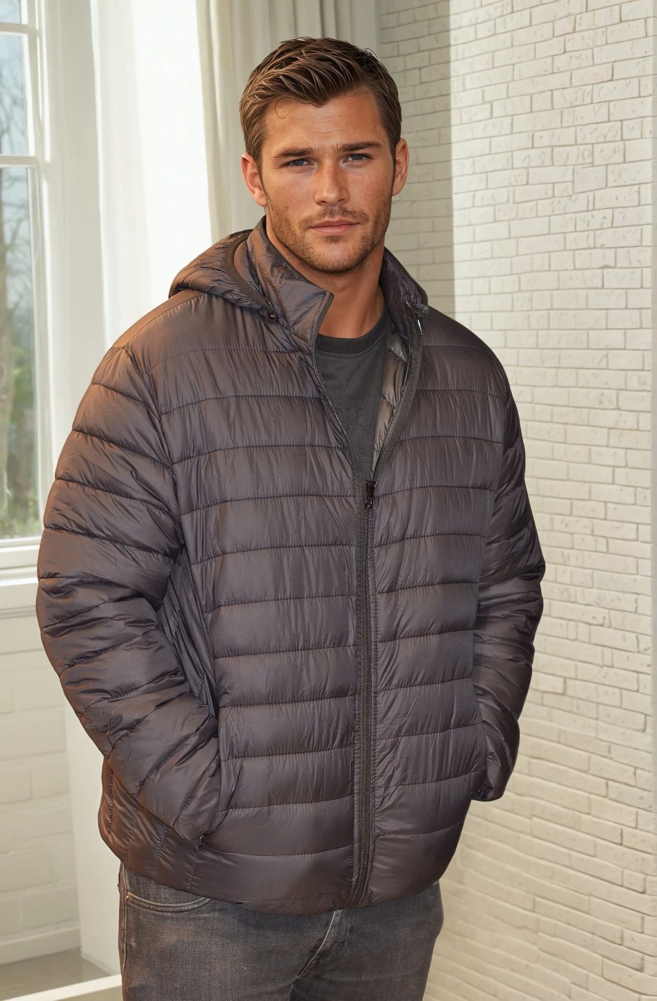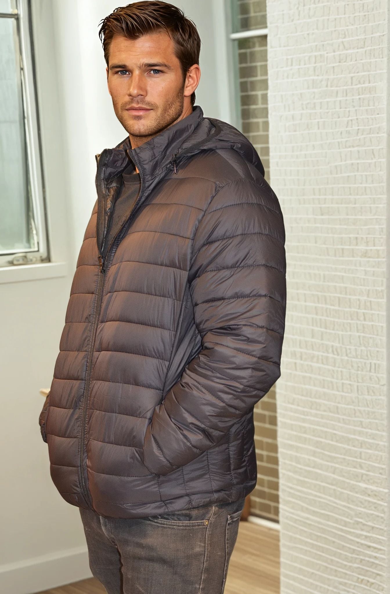 Take on the elements in streamlined style with the Stormline Hooded Puffer Jacket. Crafted for lightweight warmth and everyday durability, this jacket features horizontal quilted padding, a full front zip, and a built-in hood for added protection when the chill sets in.
