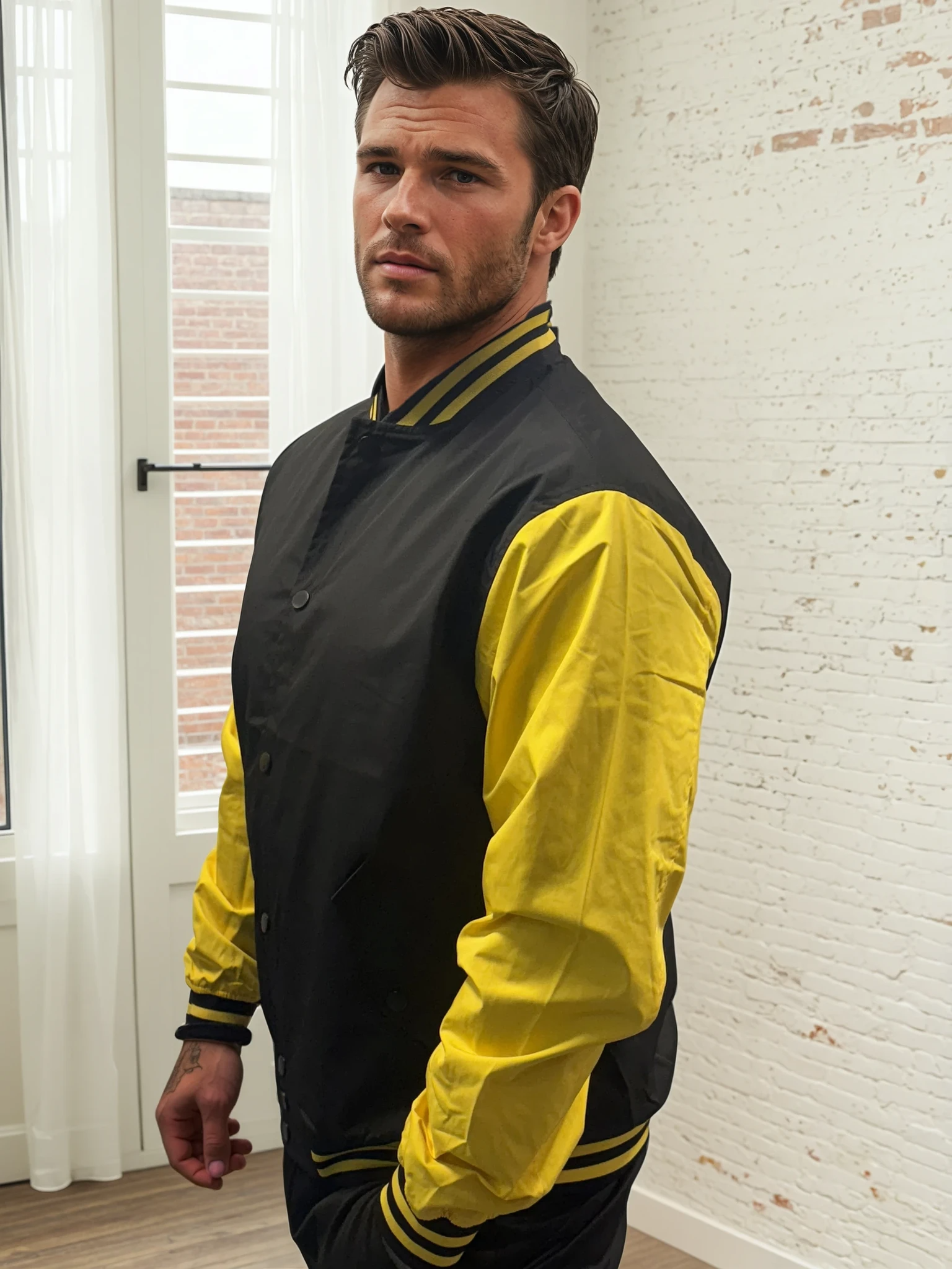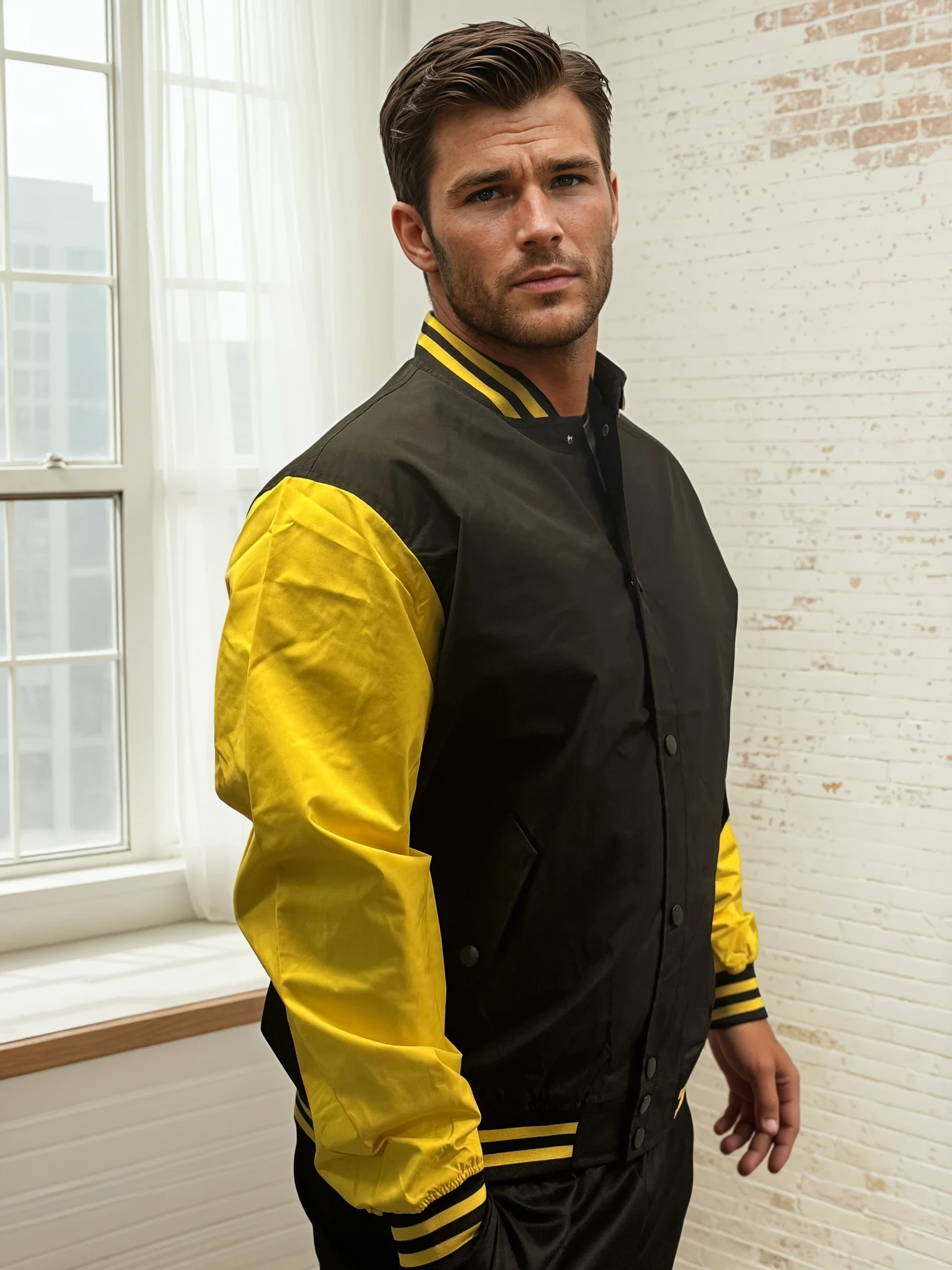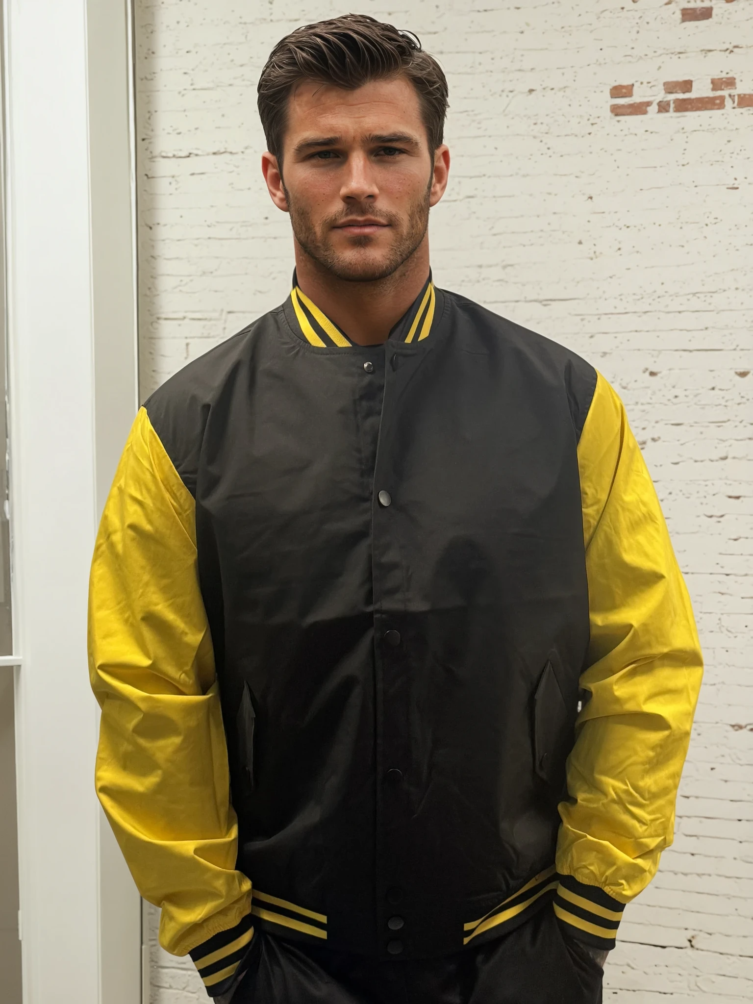 Electrify your outerwear game with the Thunderline Varsity Bomber — a bold, high-voltage blend of classic sport and modern street. With jet-black body panels fused with lightning-strike yellow sleeves, this jacket doesn’t whisper confidence — it roars it.